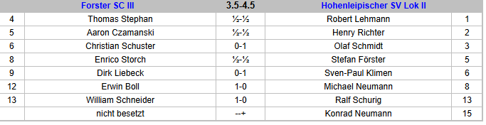 Rgionalliga: Knapp veroren 2. Oktober 2025 von jg Gegen die favorisierte Mannschaft aus Hohenleipisch verloeren wir 3,5:4,5.