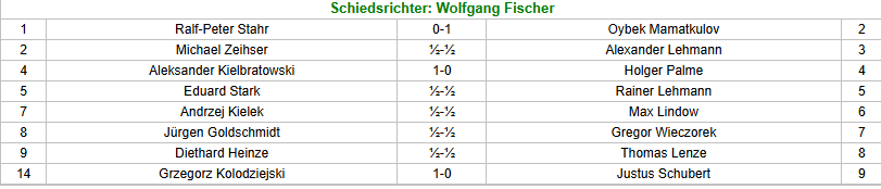 Lange haben wir nicht mehr gegen Cottbus gespielt. Wir konnten erstmalig Ralf-Peter einsetzen. Allerdings war Andreas krank und konnte leider nicht mitspielen. Das Spiel war hochklassig für die Landesliga. Wir konnten uns erheblich steigern im Vergleich zum Frankfurt-Spiel. Aleksander und Gzegorz konnten überzeugend gewinnen. 4,5:3,5 gewonnen. Wir sind wieder dabei im Abstiegskampf.